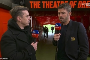 卡里克在德比前的新闻发布会上对罗伊·基恩的评论一笑了之,但据了解,曼联官方果断拒绝了天空体育的采访请求,而这完全可以理解。最终,改由加里·内维尔去采访前队友卡里克。