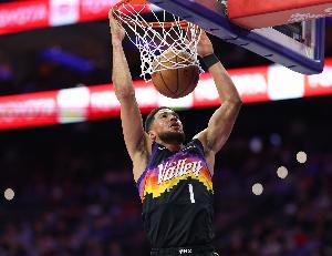 本赛季,布克场均25.4分4篮板6.2助攻0.9抢断,太阳30胜19负西部第六。