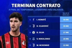 合同年球员德转身价榜:科纳特5000万欧居首,弗拉霍维奇次席